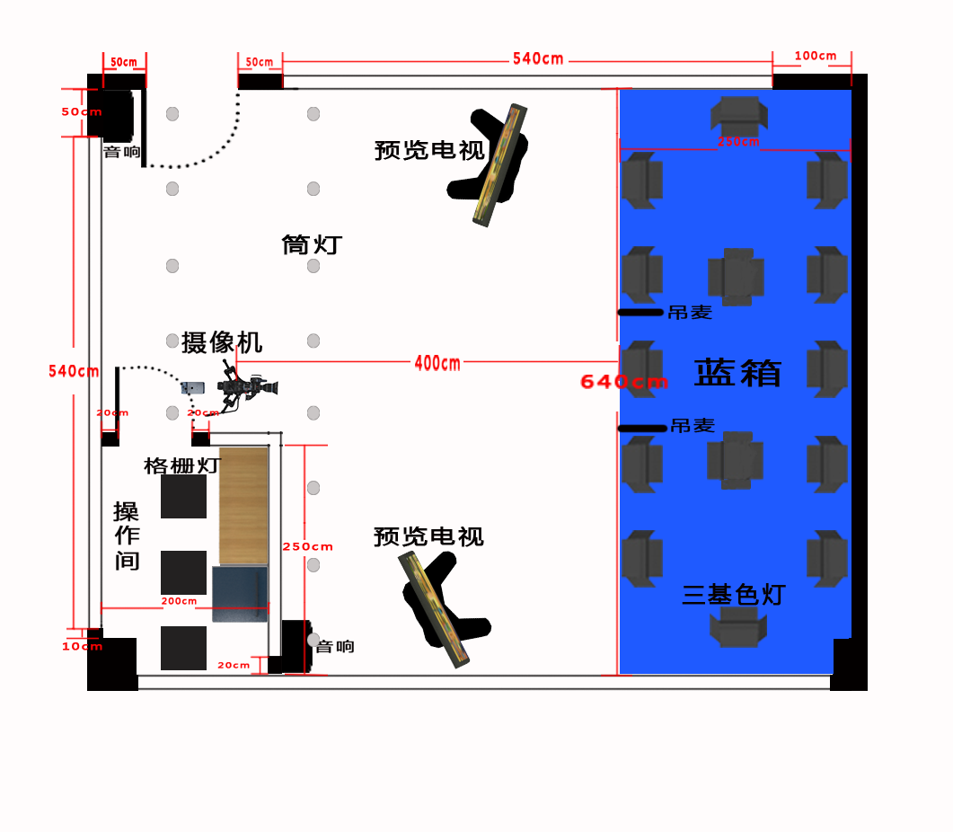 演播室定位:小型演播室、集聲學裝修、綠箱制作、LED新聞燈;